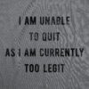 I Am Unable To Quit As I Am Currently Too Legit Women’s T Shirt
