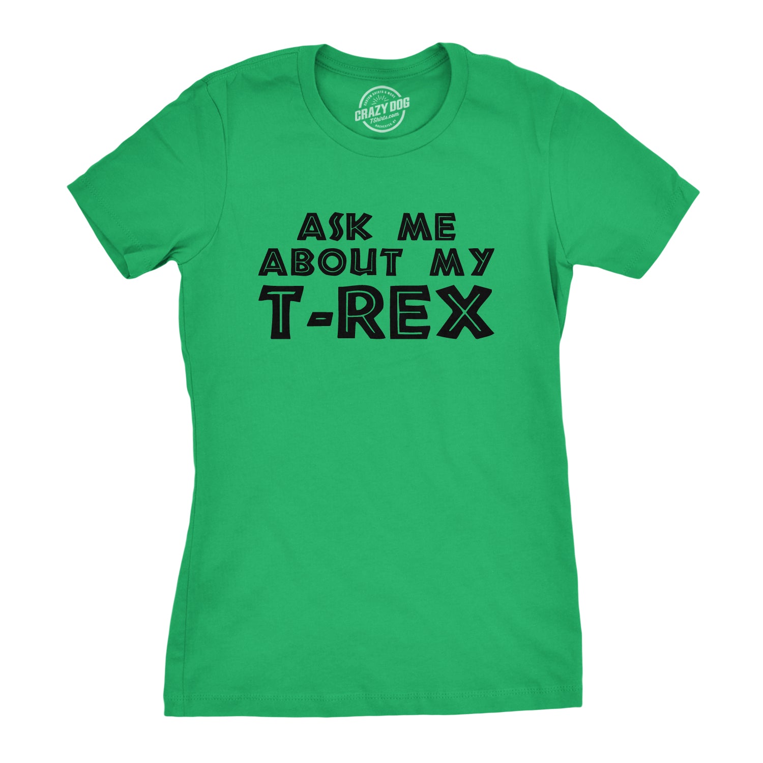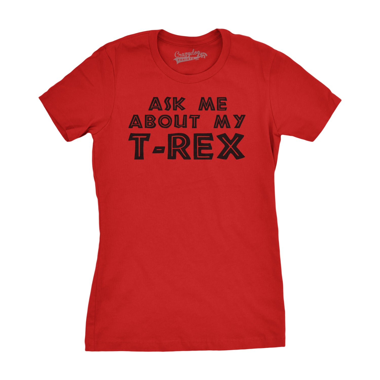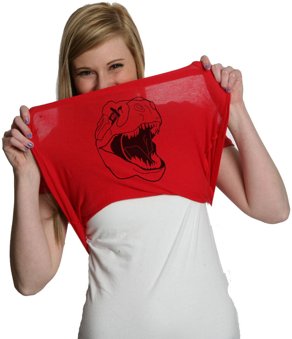 This original CrazyDog T-shirts design comes in two styles and four colors. It is one of the first flip up t-shirts that we ever came up with, and it’s still going strong after all these years. Our men’s modern fit comes in sizes small through 5XL, while our women’s slim tees are available in sizes small through 2XL. If you’re interested in getting one of these for the little one in your life, we also offer this design in both toddler and youth style tees. This design is screen printed onto one of our super soft ringspun cotton shirts. Not only will it feel great, but it will also last you a long time. Unlike some of our competitors, we don’t subscribe to the idea that it’s okay to use cheap materials or substandard inks. We think that if you’re going to spend your hard earned money on one of our products, we want to make sure that it’s worth your while. Can you imagine what it would have been like if you had worn this to the movie theater when Jurassic World rolled out? Yeah, it would have been awesome. Make sure that you get your Ask Me About My T-Rex flip up shirt today!