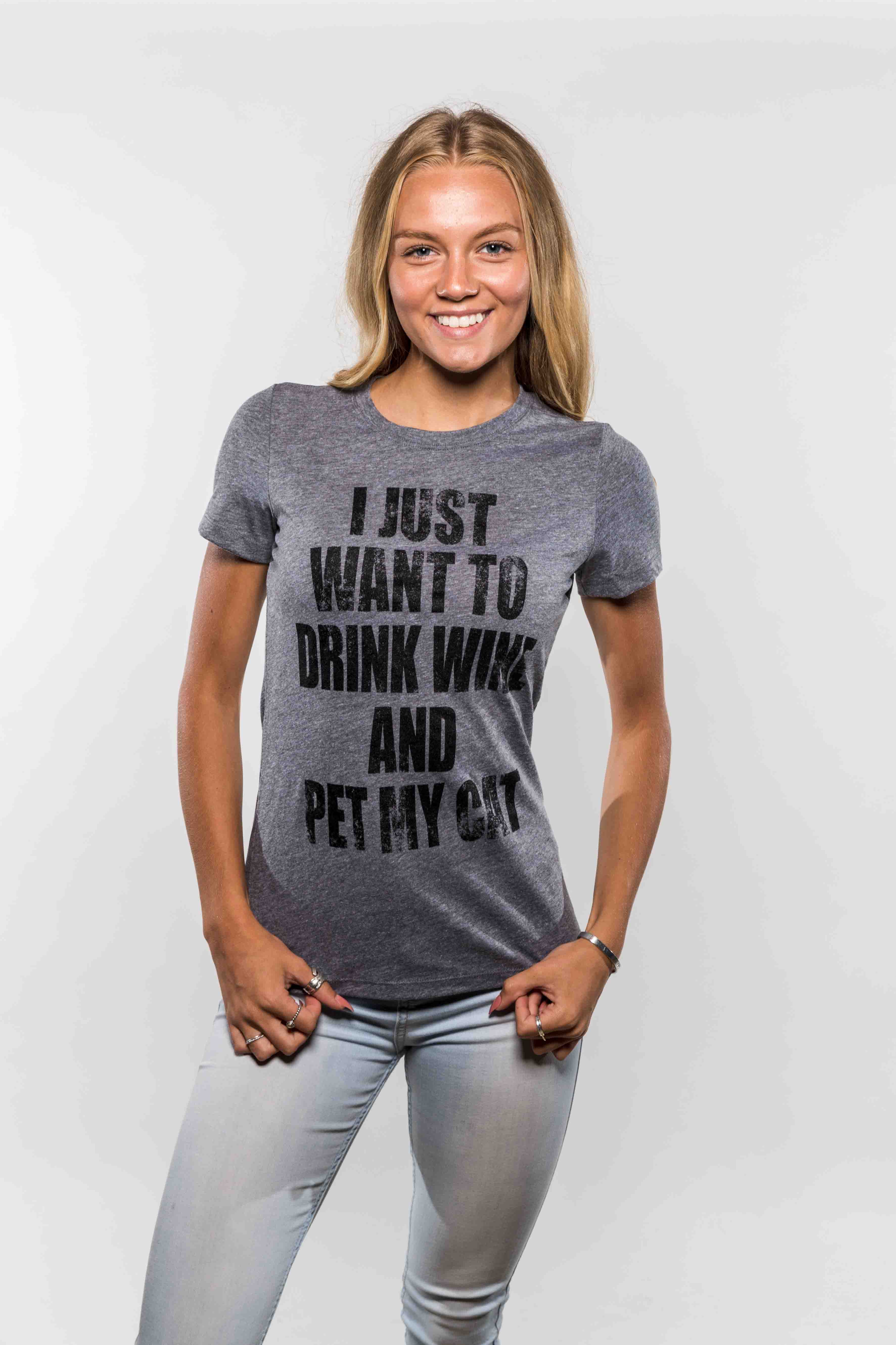 I Just Want To Drink Wine and Pet My Cat Women’s T Shirt