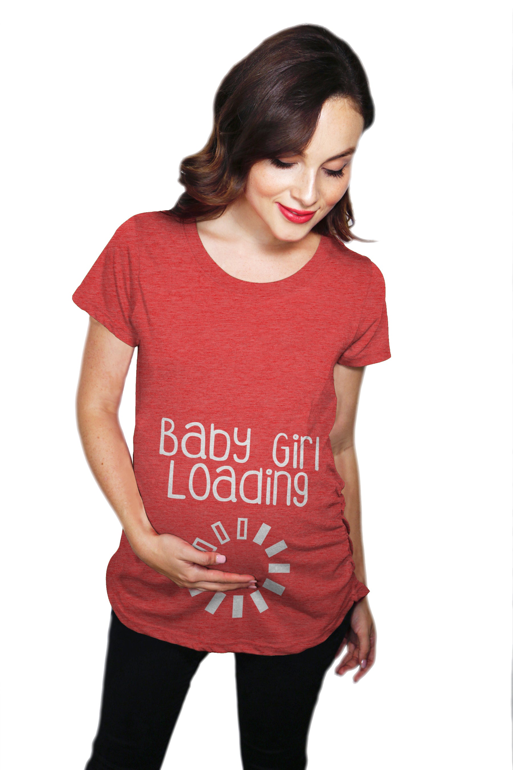 Cute baby gal loading….. This funny women’s graphic maternity t-shirt is for pregnant women that are expecting a baby girl. It is light weight, trendy & designed for your baby bump’s best comfort. Buy this adorable pregnancy tee for someone who is expecting!