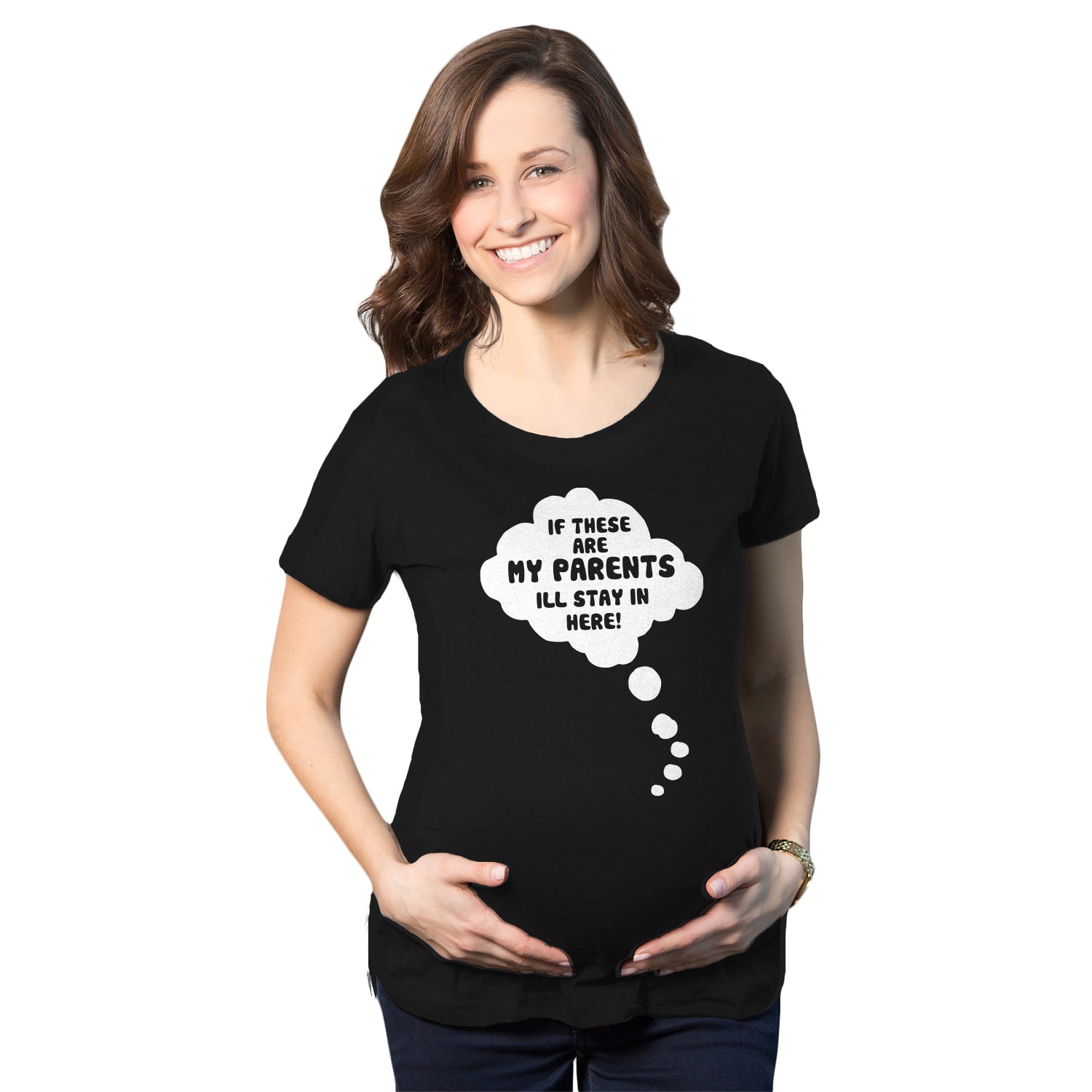 If These Are My Parents I’ll Stay In Here Maternity T Shirt