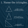 Did you know that we also offer this clever little design on several other products as well? Well, we do, and they’re all just as awesome as this one. Are you a woman who happens to prefer a slim fitting v-neck? Are you searching for a maternity shirt, and want to use your new baby bump to show off your love of higher mathematics? Sweet. We also offer our Name the Triangles design in youth styles, shower curtains, duvet covers, and our super stylish cotton canvas tote bags!